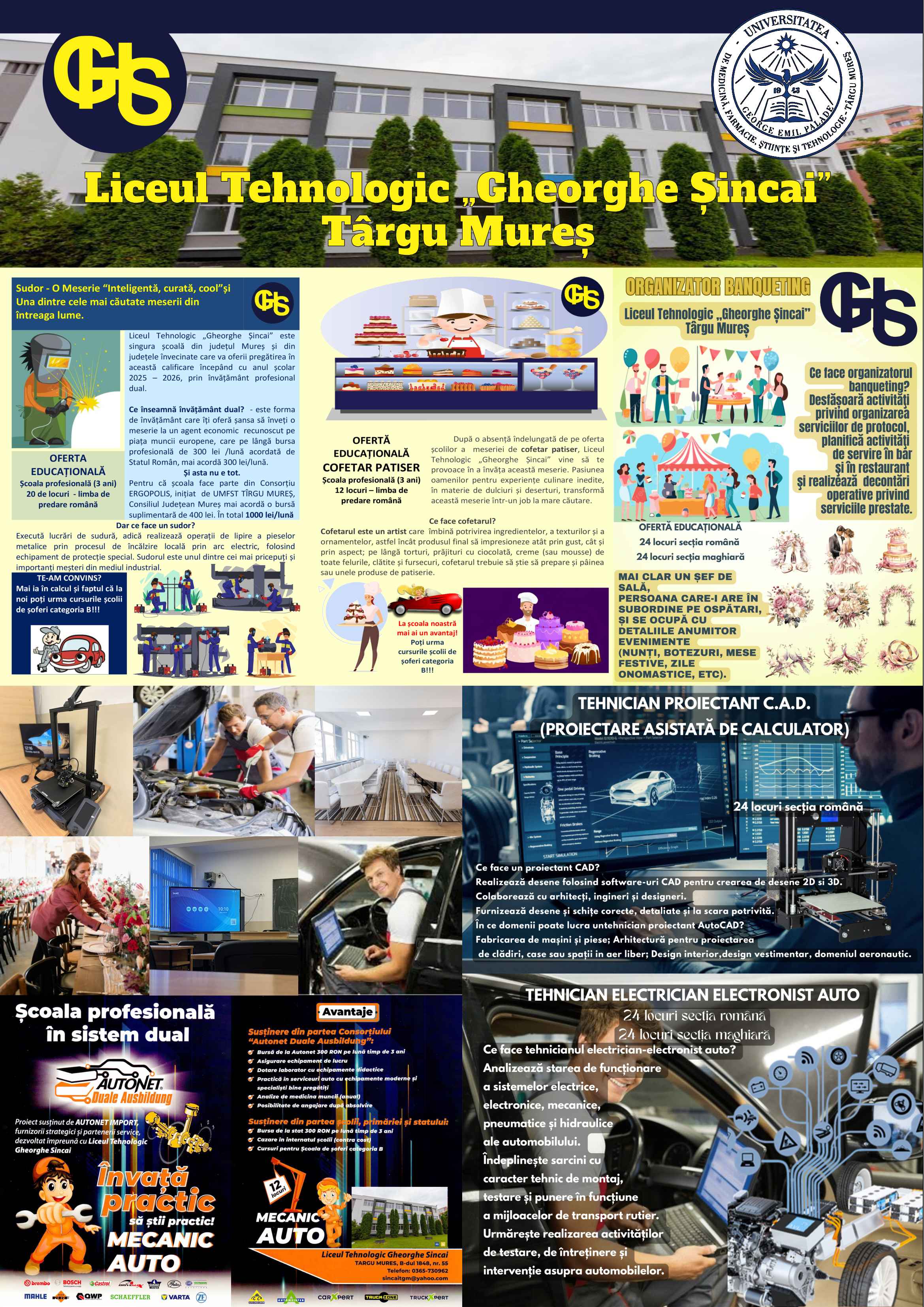 Depunerea dosarelor pentru înscrierea la învățământul profesional (școala profesională), în anul școlar 2025-2026 se face la Liceul Tehnologic „Gheprghe Șincai” la urmatoarea adresa : B-dul 1848, nr.55